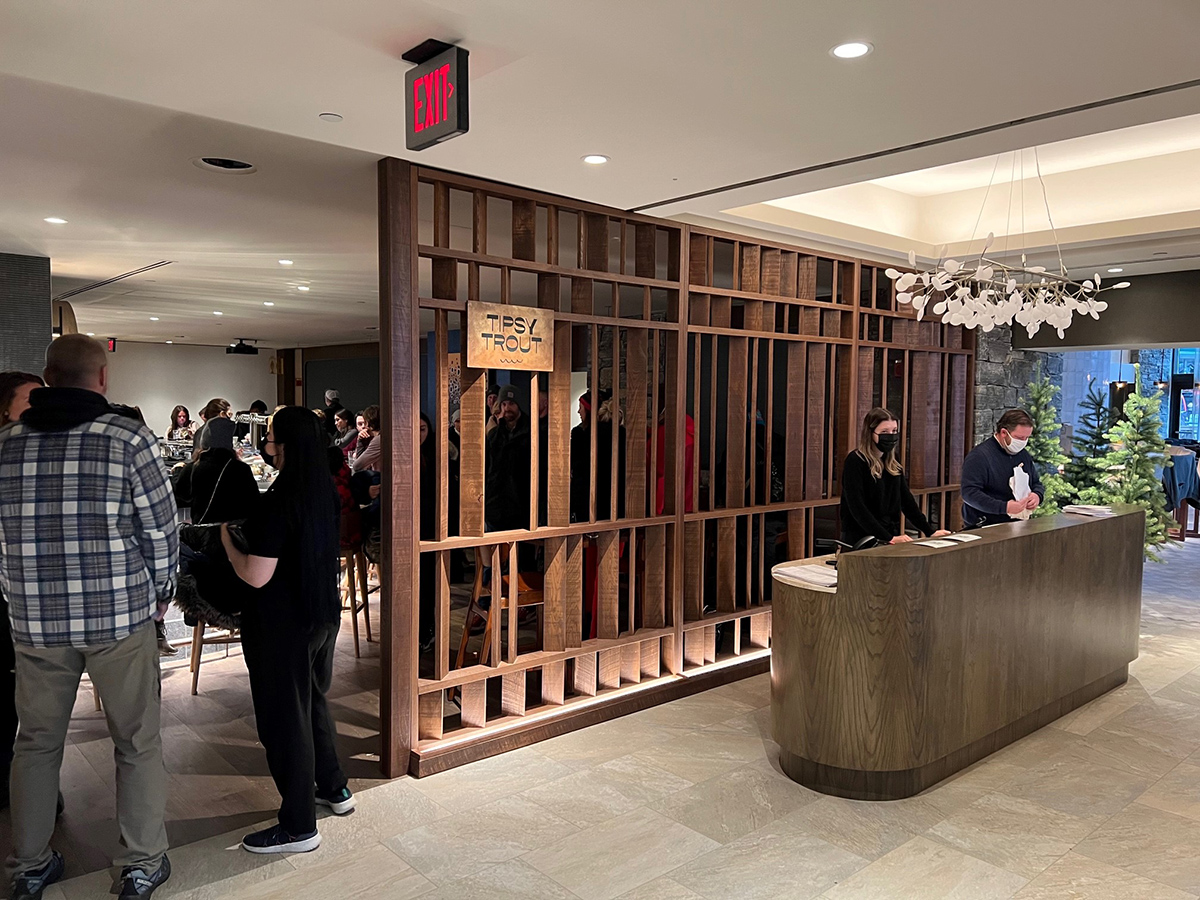 Front-of-house, two new high-concept eateries, Alpine Hall and The Tipsy Trout, capture the true spirit of mountain living. Both feature expanded server stations, enlarged seating areas, new bars and multiple food service options.