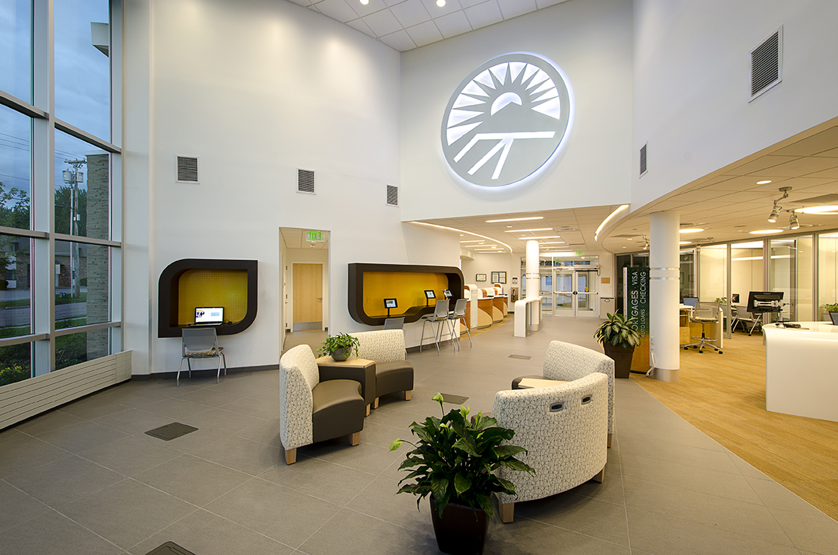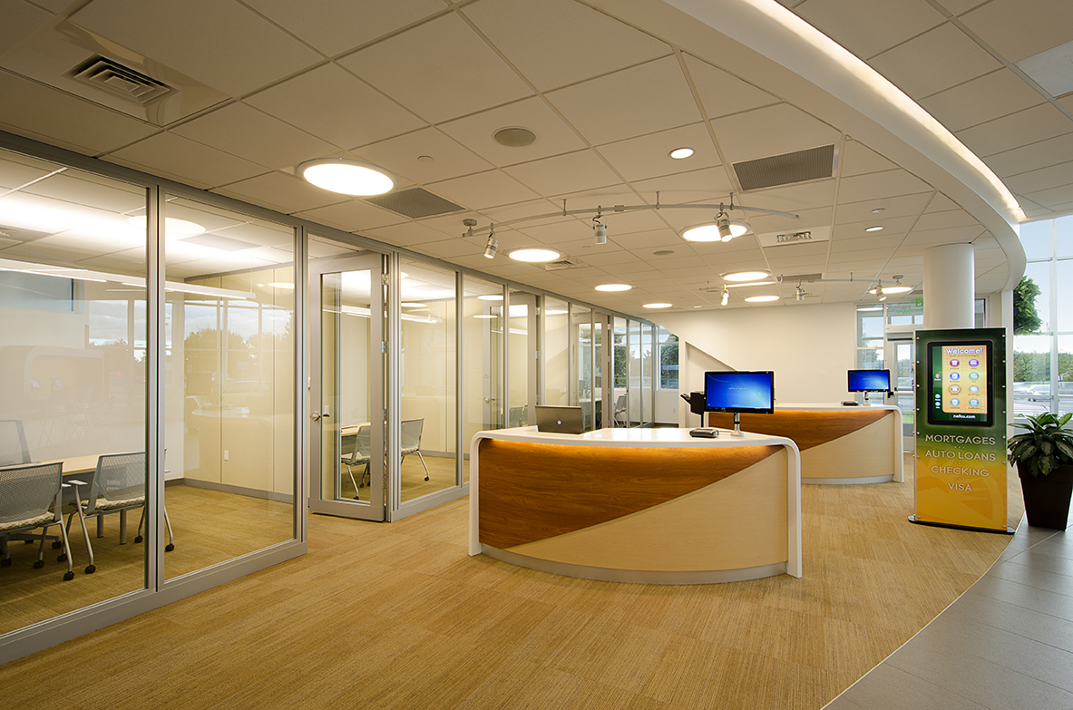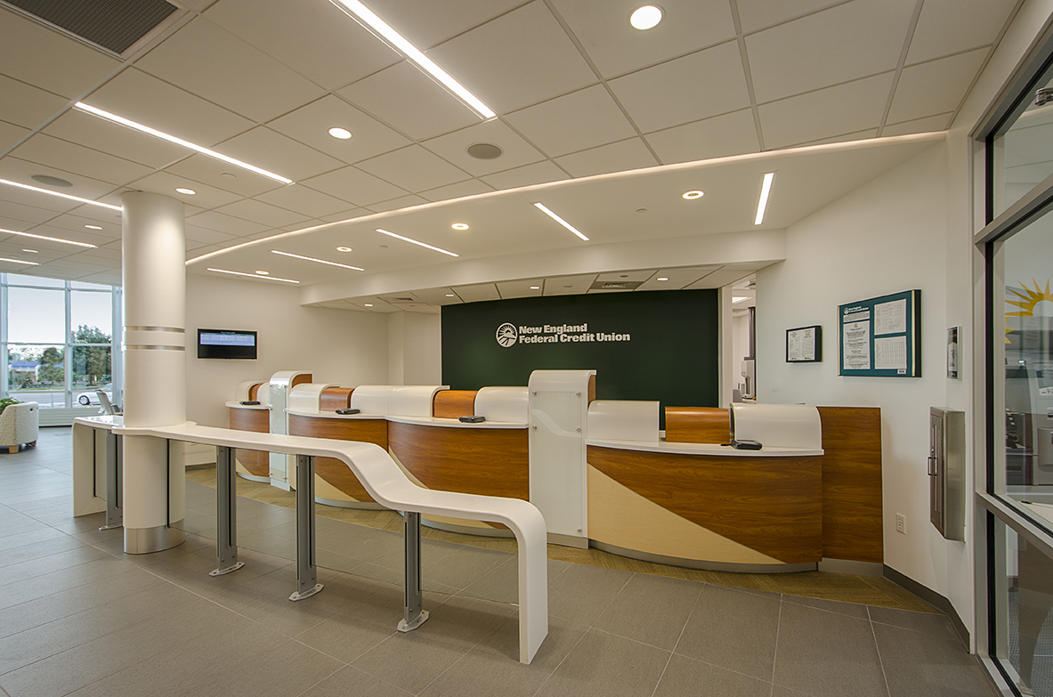 Vermont’s largest credit union turned to Freeman French Freeman to create a whole new design for its flagship South Burlington branch. Using only about half of the square footage of the building it replaced, the physical workspace was completely redesigned to increase employee efficiency, reinforce the NEFCU brand, and elevate the customer experience.
