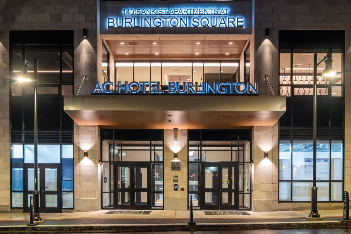 Phase 1 of the project—the South Tower—opened in the fall of 2025. Anchoring the project is the AC Marriott Burlington Hotel, with 161 guest rooms on six floors. The hotel is sandwiched between ground-level retail and Bank Street Apartments at Burlington Square, which features 53 apartments on the top four floors.