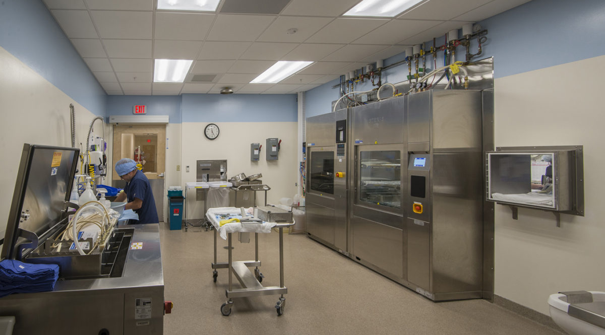 Designed for maximum staff efficiency, the 20,000 square-foot addition incorporates an innovative triangular design that makes the space more compact, provides better sightlines, and reduces travel distance for staff. Central Sterile Processing is conveniently located adjacent to three new operating rooms while medical waste flows out of the OR opposite the main entryways, thereby minimizing contamination and infection.
