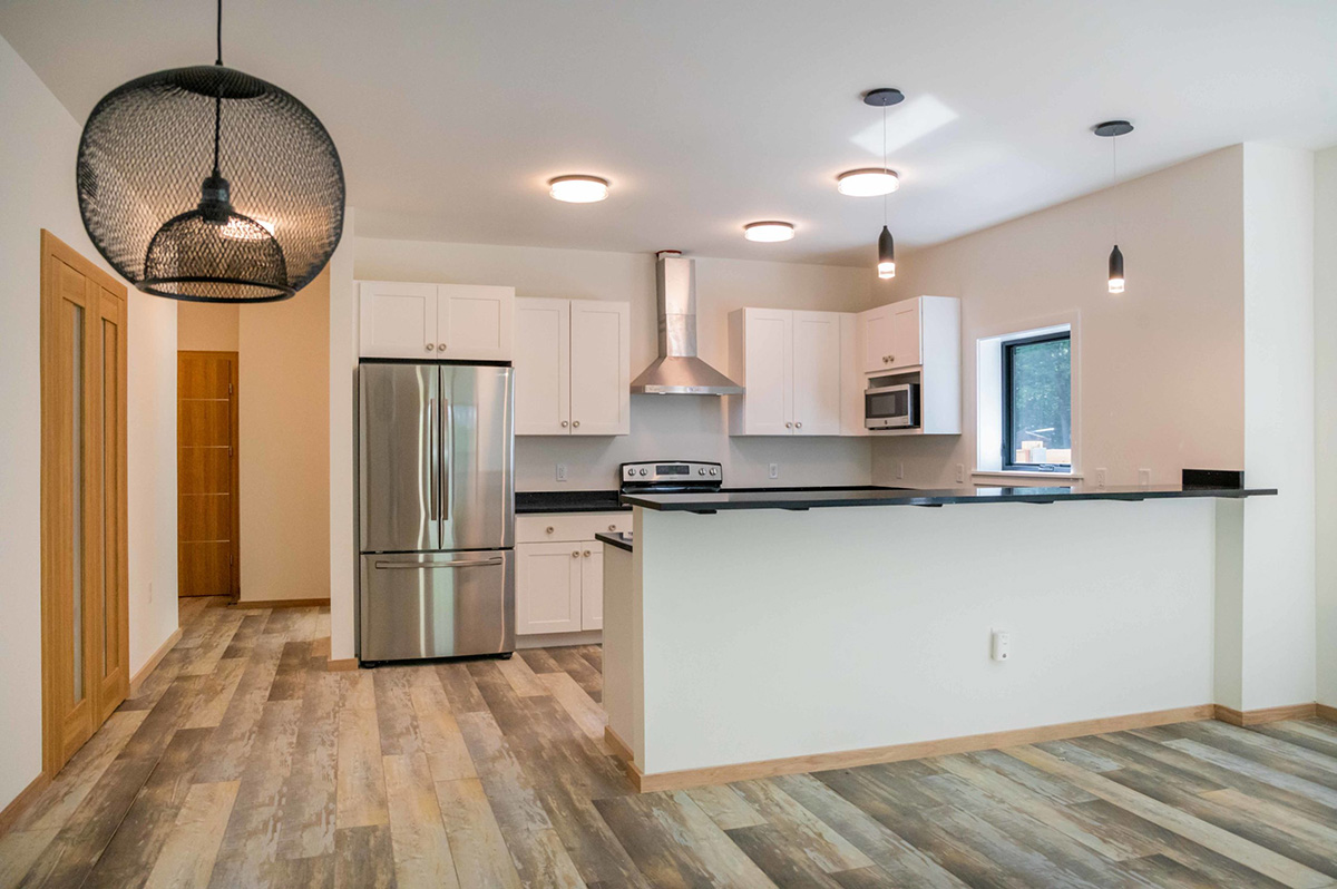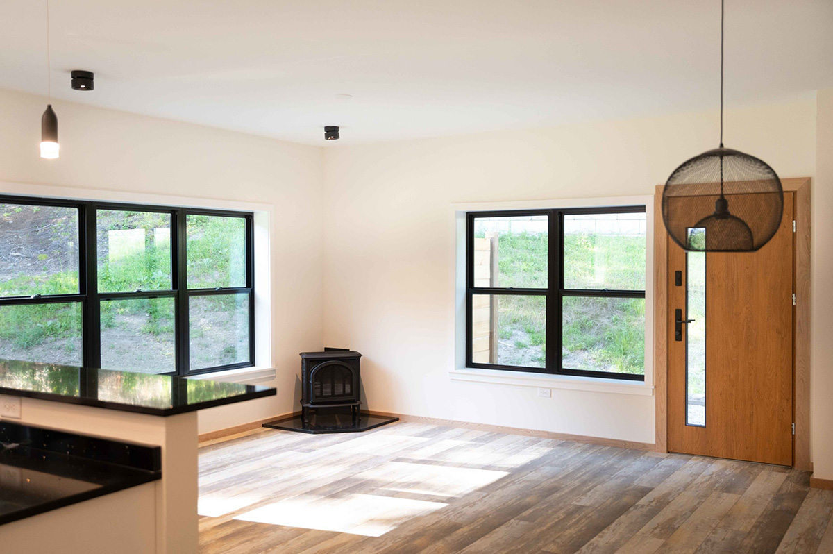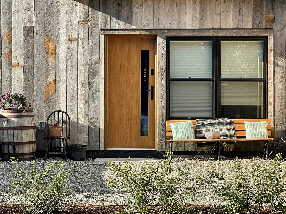 The Nordic-themed building includes many environmentally sensitive features including a recycled barnwood exterior, high-efficiency fixtures, and a mini-split heat pump system for heating and cooling.