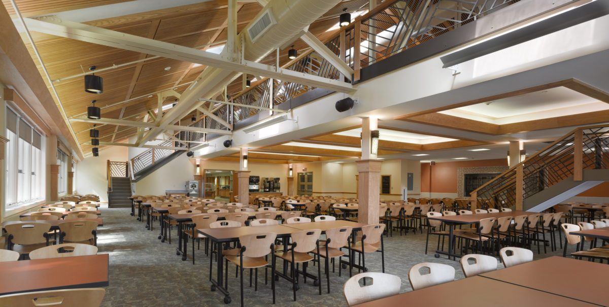 Other upgraded areas included a new President’s Dining Room, a large student dining area, a radio station, and a campus programmable space. The “Woodstove Lounge” has proven to be a favorite hang-out spot for students.