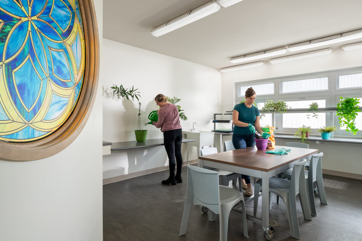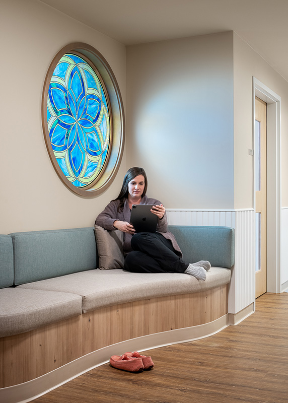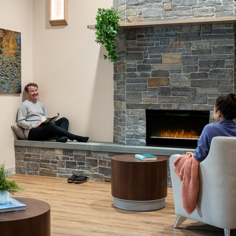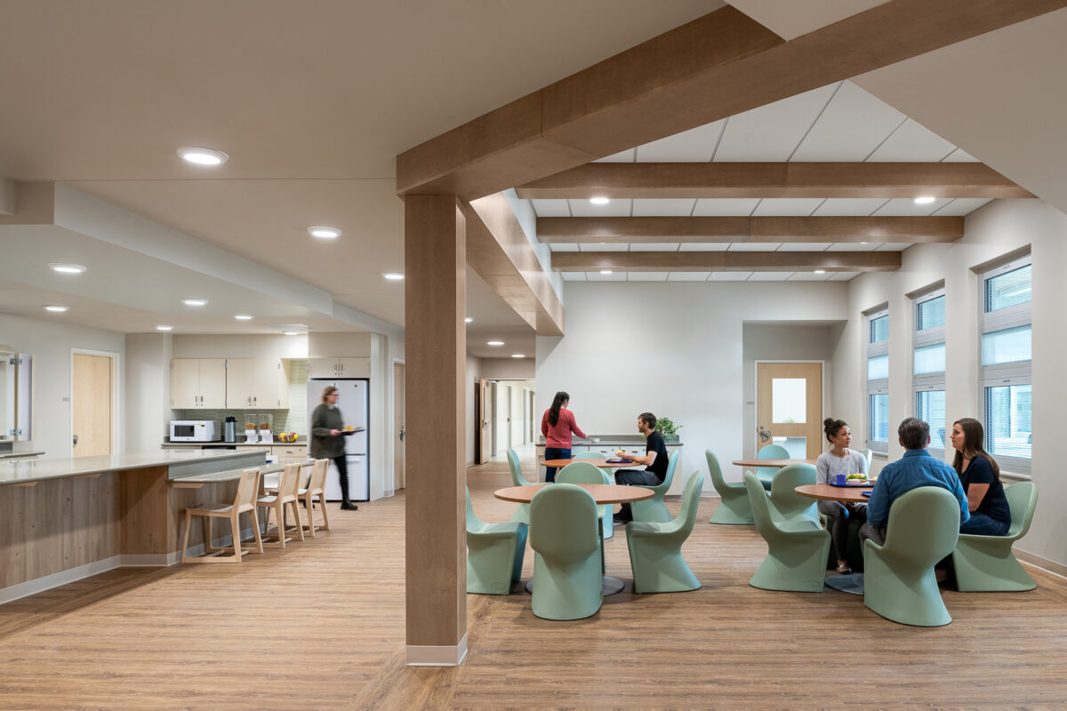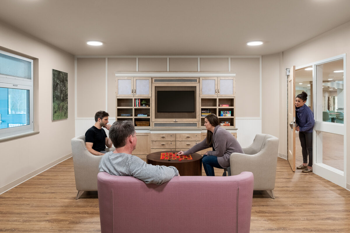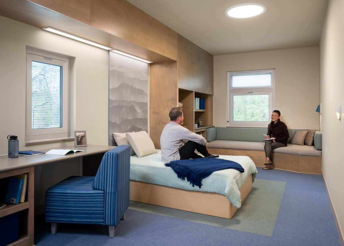 The facility creates a home-like atmosphere that is recovery-oriented, trauma-informed, and centered on the individual needs of each resident. Each room includes built-in furniture, a full-size bed, a comfortable window seat and en-suite bathroom.