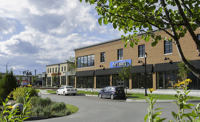 The project includes Vermont’s first Trader Joe’s supermarket as well as a Pier One retail store. The two street-front stores are tied together with a beautifully landscaped public plaza and back-lot parking hidden from public view.