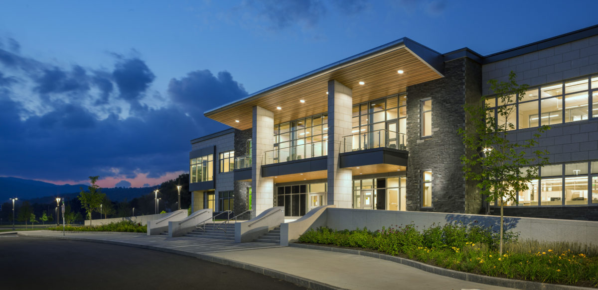 The LEED Platinum complex was built with sustainability and resiliency in mind. A biomass-fueled central plant provides heat and hot water to the entire complex and rooftop photovoltaics help illuminate the new office building. To protect against future floods, all occupied spaces lie six inches above the 500-year flood mark. FFF served as Architect of Record for the $125 million project, with Goody Clancy Architects of Boston as Historic Preservation Architect.
